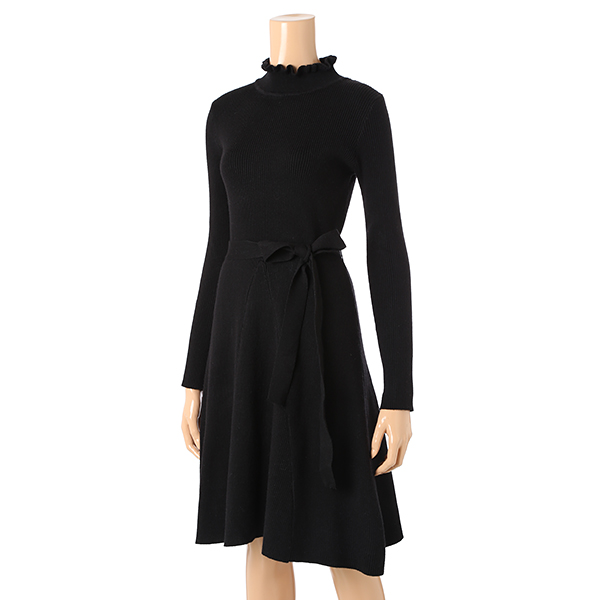 블랙 끈과 세트 상품인 슬림형 A라인 니트 원피스입니다.