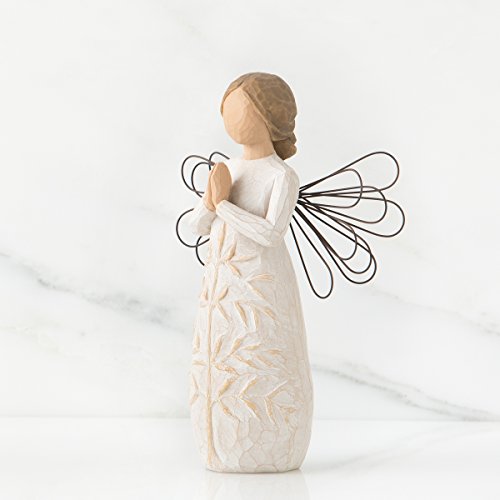 -. Feature : Sentiment on enclosure card: "May you find strength, beauty and peace each day". Enclosure card included in box for gift-giving. / 5.5"h hand-painted resin figure with wire wings. Dust with soft cloth or soft brush. Avoid water or cleaning solvents. / Artist Susan Lordi hand carves the original of each Willow Tree piece from her studio in Kansas City, MO. This piece is cast from Susan's original carving and painted by hand. / Willow Tree is an intimate line of figurative sculptures that speak in quiet ways to heal, comfort, protect and inspire. Sculptures communicate through gesture... to represent an emotion or mark a memory. / Since 1999, Susan Lordi has worked in partnership with DEMDACO to produce, market and distribute Willow Tree, her line of carved, figurative sculptures.