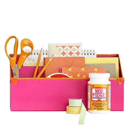 - Frisco™ Desk Organizer– Pink with Contrast Orange Metal Accent
