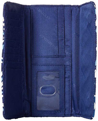 Fold your way to success with the fiery Vera Bradley® Trifold Wallet. Made of quilted man-made fabric. Magnetic closure. Exterior back zip pocket. Lined interior. Three interior slip pockets. Interior wallet credit card slots with ID slot. Imported. Measurements: Bottom Width: 8 1⁄4 in Depth: 1⁄4 in Height: 4 in Weight: 4.4 ozFeature