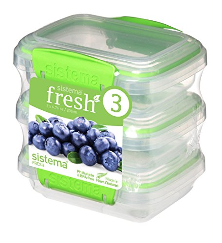 Sistema Fresh Collection Food Storage Containers, 6.7 Ounce/.8 Cup, 3 Pack, Clear/Lime Green