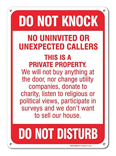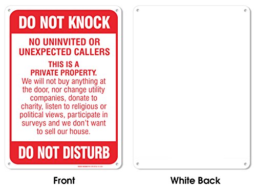 No Soliciting Sign - Do Not Knock - Do Not Disturb Sign - 10" high x 7" wide, Red on White, Rust Free Aluminum Sign