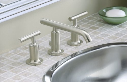 KOHLER K-14410-4-BN Purist Widespread Lavatory Faucet with Low Spout and Low Lever Handles, Vibrant Brushed Nickel
