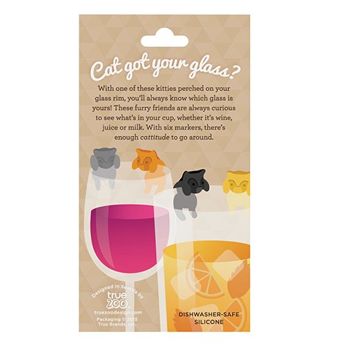 -. Feature : Includes 6 Different Colored Kittens / Dishwasher-Safe Silicone / Fits On Glasses, Cans And Stemware / Each Charm Measures 1.25 Inches / Buy Some Meow!