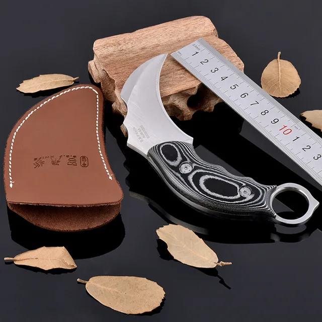 칼집 가죽 나무 핸들 유틸리티 야외 생존 캠핑 사냥 부엌 고정 블레이드 나이프 도구