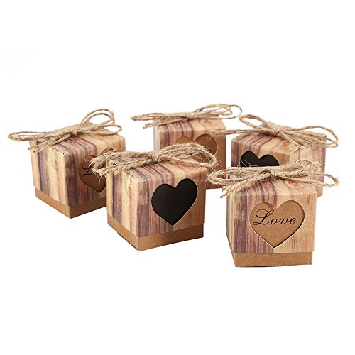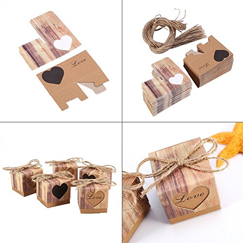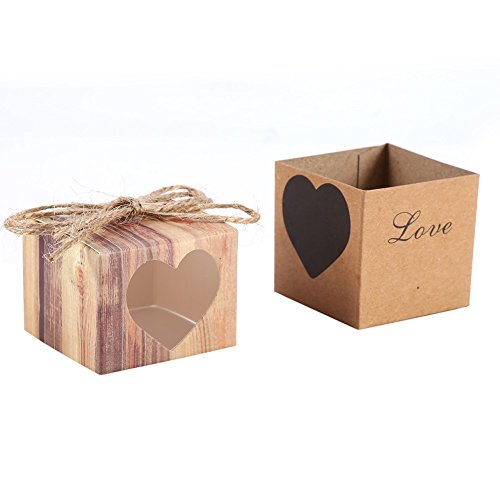 50pcs Love Heart Candy Box Rustic Wedding Gifts Kraft Packing Box With Burlap Jute Ribbon Wedding Party Decoration (style01)