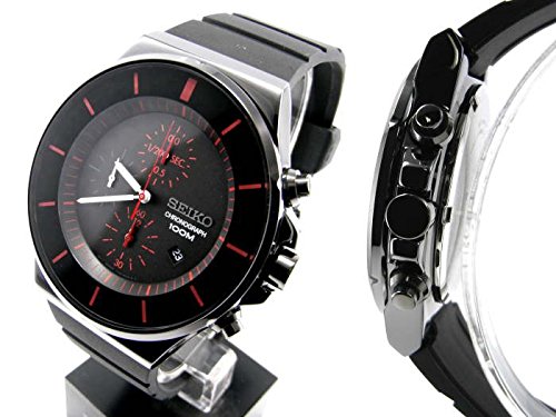 흑폴리우레탄의 스테인레스 스틸 케이스.고정 된 블랙PVD베젤.밝은 손과 빨강의 인덱스 시간을 가지는 블랙 다이얼 마커.바깥쪽의 인연의 주위분의 마커.아날로그:타입를 다이얼.형광침과 마커.4시 위치에 날짜 표시.크로노그래프 - 3개의 서브 다이얼을 표시:60 제2,듀얼60분/ 12시간과의 20분의 12번째의.쿼츠 무브먼트.상처로 강한 하드렉스 크리스탈.솔리드 케이스 백.케이스 직경: 44mm.라운드 케이스 형상.당clasp.100미터/ 330피트에 내수성.기능:크로노그래프,일,시,분,.캐주얼 워치의 스타일.세이코 크로노그래프 블랙 다이얼 맨즈 워치SNDD61.