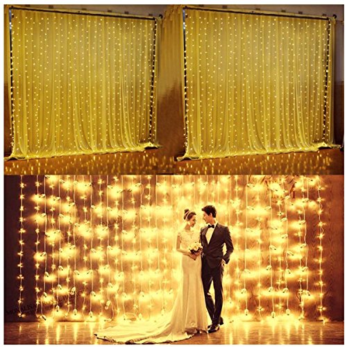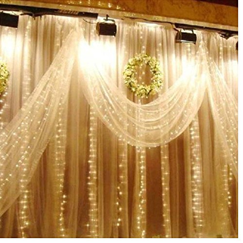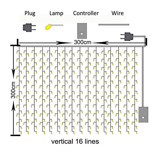 With high brightness to lighten up and add the character to the place inside or outside. A 9.8ft *9.8ft(3m*3m) curtain strings of lights, total of 16 strings