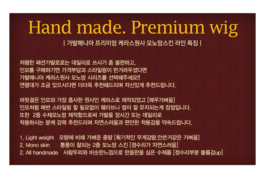 유행타지 않는 디자인과 모노망 전체스킨으로 정수리가 제작되어 정수리 부분도 자연스러운