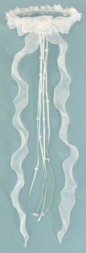 - Title : Beautiful Child Wreath of Tulle and Satin Flowers with Silk Leaves Adorned with Tiny Dried Baby's Breath and Organza Bow and Streamer in the Back #81GJwi (WHITE)
