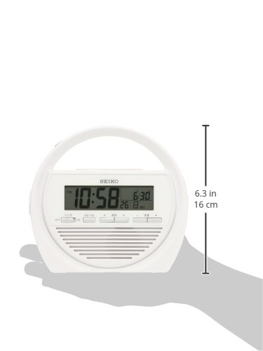-. Title : セイコー クロック 目覚まし時計 防災クロック 電波 デジタル 手回し充電 ラジオ LED懐中電灯 非常用ブザー 携帯電話充電 白 SQ764W SEIKO