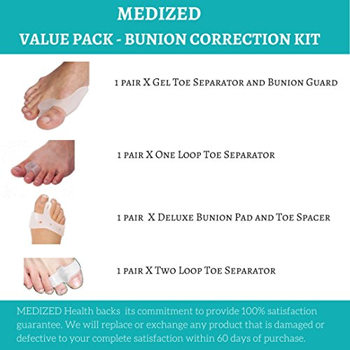 MEDIZED The Most Comprehensive Bunion Relief Kit Toe Separators Hallux Valgus Bunion Protector Bunion Corrector Bunion Pads Toe Spacer Bunion Splint...