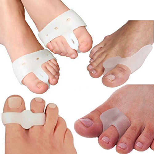 THE ULTIMATE BEST DEAL ON AMAZON !!! Variety of HIGH QUALITY Bunion Relief Set of 8 PIECES (4 different pairs) - developed to cover your Bunion needs for all daily activity with shoe or barefoot and during sleeping time. One Size Fits Most Feet. (Toe Separators, Bunion and Hallux Valgus).