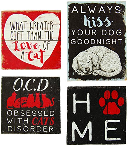 Love of Cat Home Dog Inspirational Primitive Wood Decorative Magnets Set of 4