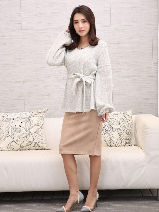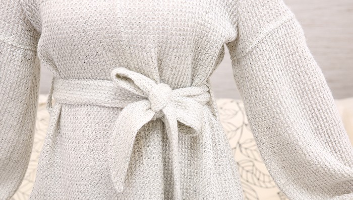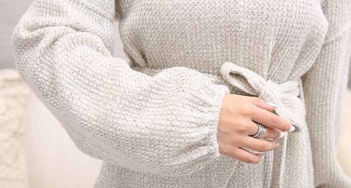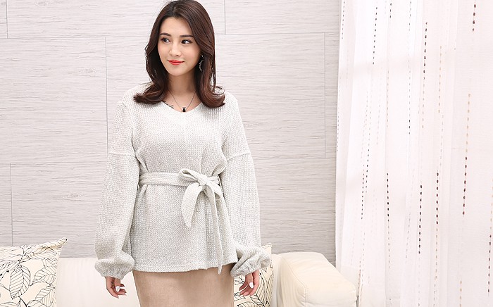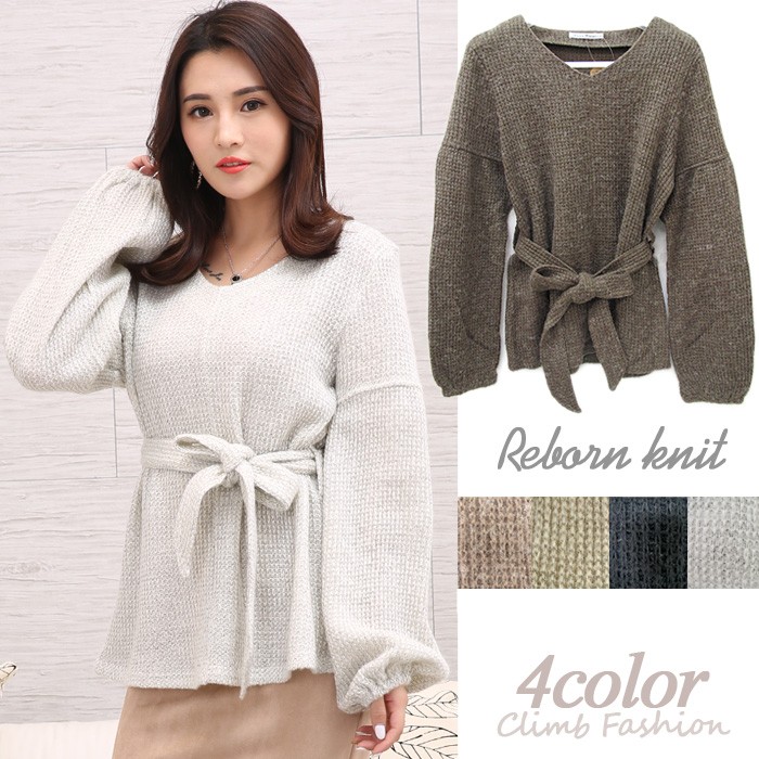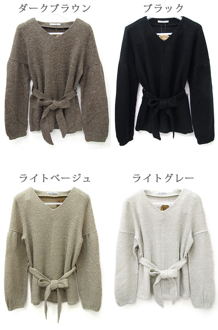【デザイン】ゆったりとしたシルエットのニットにリボンをきゅっと結んで女性らしい印象に仕上げました。ボリュームのあるスリーブは手元を華奢に見せてくれる効果も期待できます。【コーディネート】トップスにボリュームがあるので、ボトムスはタイトスカートやスキニーパンツで合わせてバランスを取るのがおすすめ。【素材・着用感】ソフトな肌触りのニット素材。ゆったりとした身頃でストレスフリーな着用感です。カラー:ブラック、ライトベージュ、ダークブラウン、ライトグレーモデル着用カラー:ライトグレーモデル身長:160cm原産国:中国製素材:アクリル85% 毛15%サイズ:FREE(総丈:62cm/胸囲:45cm/肩幅:41cm/袖丈:60cm/袖口:10cm)