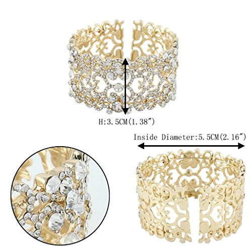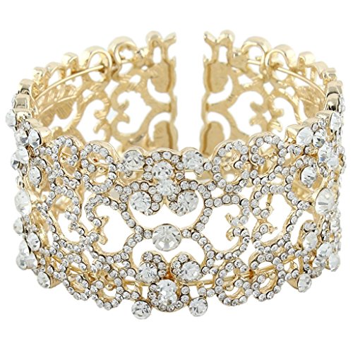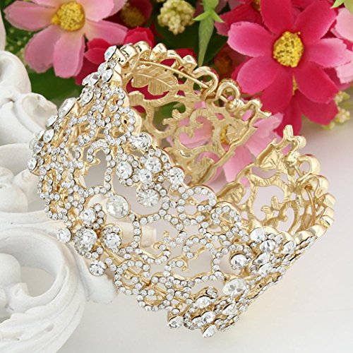 -. Binding : Jewelry -. Brand : EVER FAITH -. Department : womens -. Feature : [!]EVER FAITH is a US registered trademark and Ever Faith Jewelry(former name: Kiss Bling) is its only owner. We will pursue legal action against trademark infringement in case of UNAUTHORIZED sale or resale. / Main Color: Clear / Size:18.3 cm (7.2") by 3.5cm (1.38"). Inside Diameter:5.5cm (2.17") by 5.5cm (2.17") / Wrapping: Come with some spare crystals, and a gift box or favor bag (depend on product size) -. Label : Ever Faith -. Manufacturer : Ever Faith -. Model : N01898-1 -. MPN : N01898-1 -. PartNumber : N01898-1 -. ProductGroup : Jewelry -. ProductTypeName : FASHIONNECKLACEBRACELETANKLET -. Publisher : Ever Faith -. Studio : Ever Faith -. Title : EVER FAITH® Gold-Tone Clear Austrian Crystal Lace Flower Bracelet Cuff