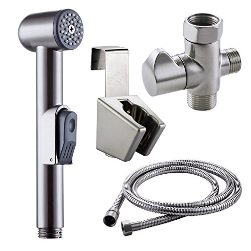 KES Toilet Handheld Bidet Sprayer with Hose and Bracket Holder Toilet Attachment Cloth Diaper Sprayer Bathroom Spray Wand Shattaf Brushed Nickel, LP900-2