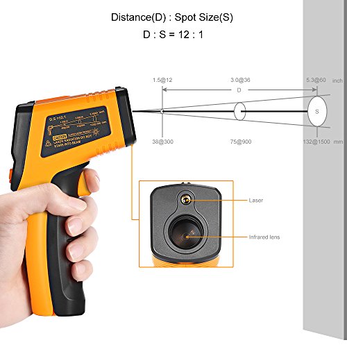 - BUILT-IN LASER: Great distance spot ratio ( 12 : 1 ) offers accurate results for longer distance compared with other thermometers.