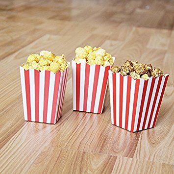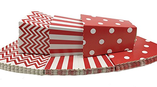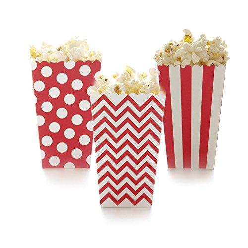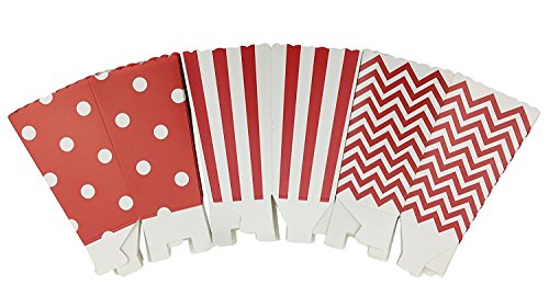- 1.Package contains 36 red Open-Top Popcorn Box(12 Chevron,12 polka dot and 12 stripe patterns in each package)