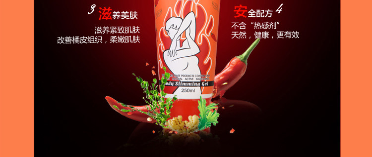 **[HOT]**HOT Chili Anti-cellulite Slimming Gel 250ml / 红辣椒凝露 提拉紧致塑形塑身 纤匀身体按摩膏霜 250 ml