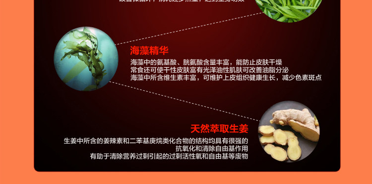 天然红辣椒油、天然蜂胶、天然生姜萃取液、海藻精华CARBOPOL、TEA、WATER、E.D.T.A、MP