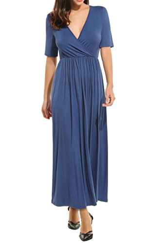 -. Title : Beyove Women's Deep V-Neck Sexy Wrap Jersey Pleated Cocktail Party Maxi Dress