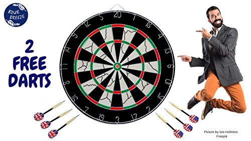 -. Title : BlueBreeze Double-sided Sisal Dartboard + 6 Darts + FREE Gift - 2 Spare Darts