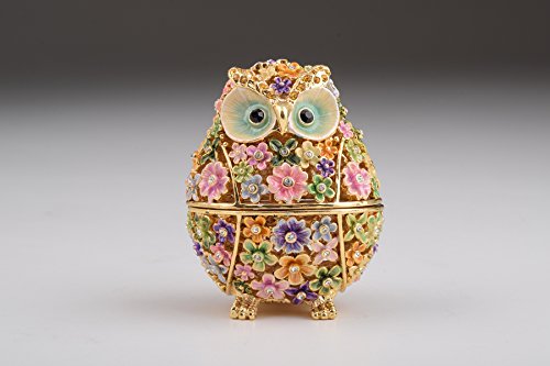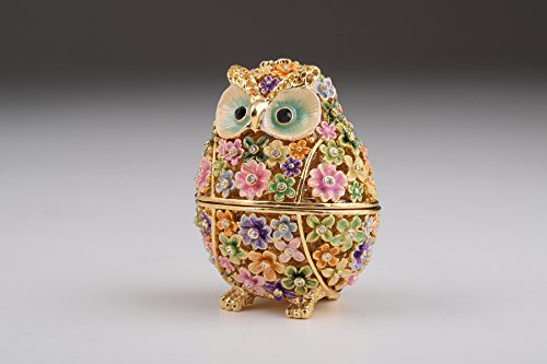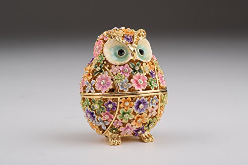 Gold with Colorful Flowers Owl Handmade Faberge Styled Trinket Box