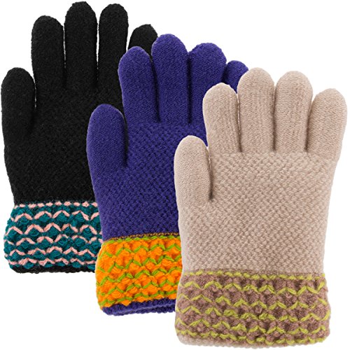 Classic Fashion (3 Pairs) Winter Gloves For Girls, Acrylic Kids Gloves With Soft Warm Knitted S...