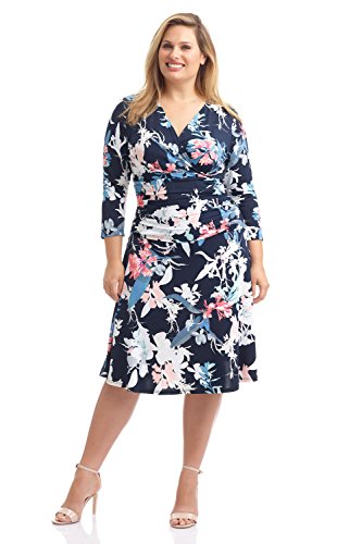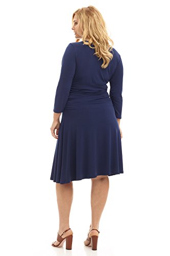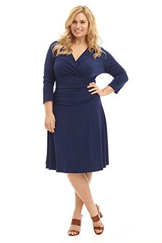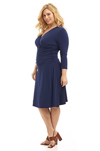 FLATTERING: Surplice crossover neckline elongates your look while still being modest. Wide ruched waist and flared skirt enhance and give an hourglass figure. Knee length skirt is classic and chic.