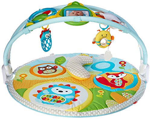 -. Binding : Baby Product -. Brand : Skip Hop -. Color : Multi -. Department : baby-boys -. EAN : 0879674022799 -. Feature : Ages 0 plus / Use it three ways: on back, tummy time and sitting up / Two-position arch for overhead and seated play / 20 developmental activities include: sound-activated dancing fox, pull-string peekaboo owl that hoots, hanging hedgehog musical teether and more! / Insert your smartphone behind the mirror to take baby photos or video chat with grandma -. IsAdultProduct : 0 -. ItemPartNumber : 303300 -. Label : Skip Hop -. Manufacturer : Skip Hop -. Model : 303300 -. MPN : 303300 -. PackageQuantity : 1 -. PartNumber : 303300 -. ProductGroup : Baby Product -. ProductTypeName : BABY_PRODUCT -. Publisher : Skip Hop -. ReleaseDate : 2015-04-14 -. Studio : Skip Hop -. Title : Skip Hop Explore & More Activity Gym -. UPC : 879674022799 -. Warranty : 1 year warranty against manufacturer defects