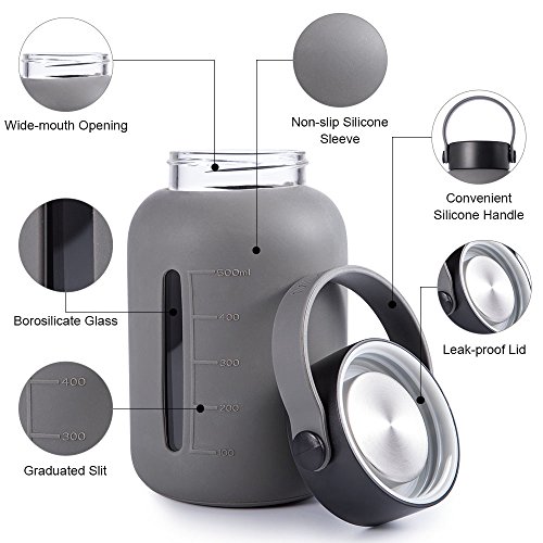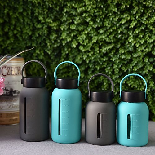 MIUCOLOR Large Glass Water Bottle - 22oz Wide Mouth with Silicone Sleeve & Stainless Steel Lid Insert Borosilicate Glass Bottles for Home Sports and Outdoor