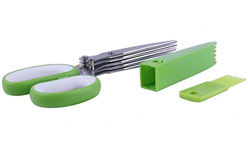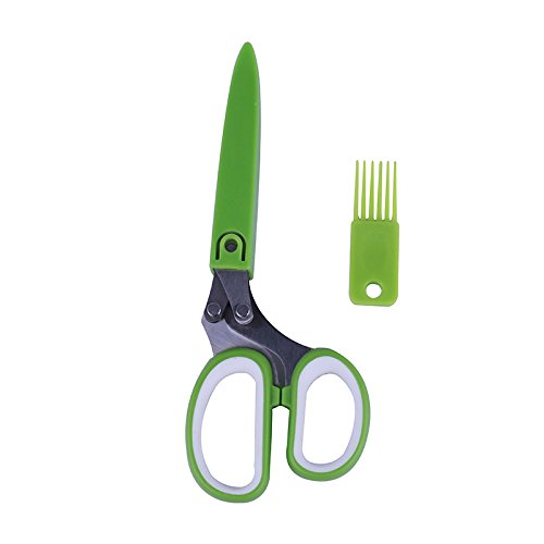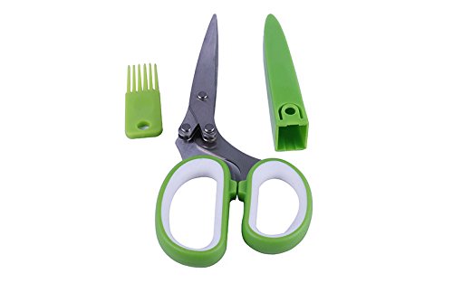 QUICK AND EASY. - Herb Scissors with 5 stainless steel blades will cut your preparation time in half, two snips with the sharp evenly spaced stainless steel blades equal 10 precise knife cuts in one go, turn out beautiful looking garnishes with these herb shears with 5 stainless steel blades and safe cover with cleaning combs all in one