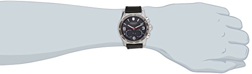 -. Feature : Stainless steel watch featuring two-step dial with textured inset at 6 o'clock, tachymeter bezel, and smooth leather band with stitching / Swiss quartz movement with analog display / Protective anti-reflective sapphire crystal dial window / Features buckle closure, chronograph subdials, and luminous dial / Water-resistant to 300 feet (100 M): suitable for snorkeling, as well as swimming, but not diving