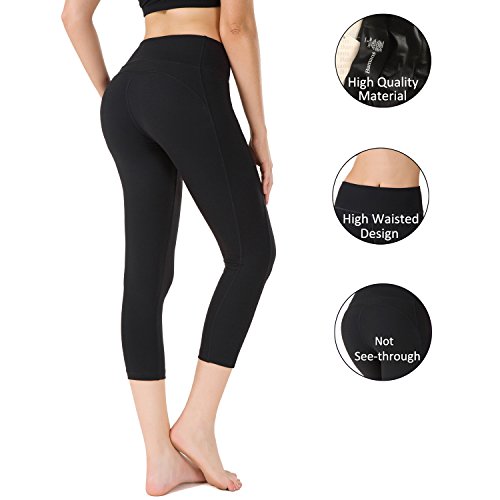 Bamans Yoga Pants Black Workout Capri Leggings for Women , Capri Skinny Leggings , High Waisted Tummy Control Design