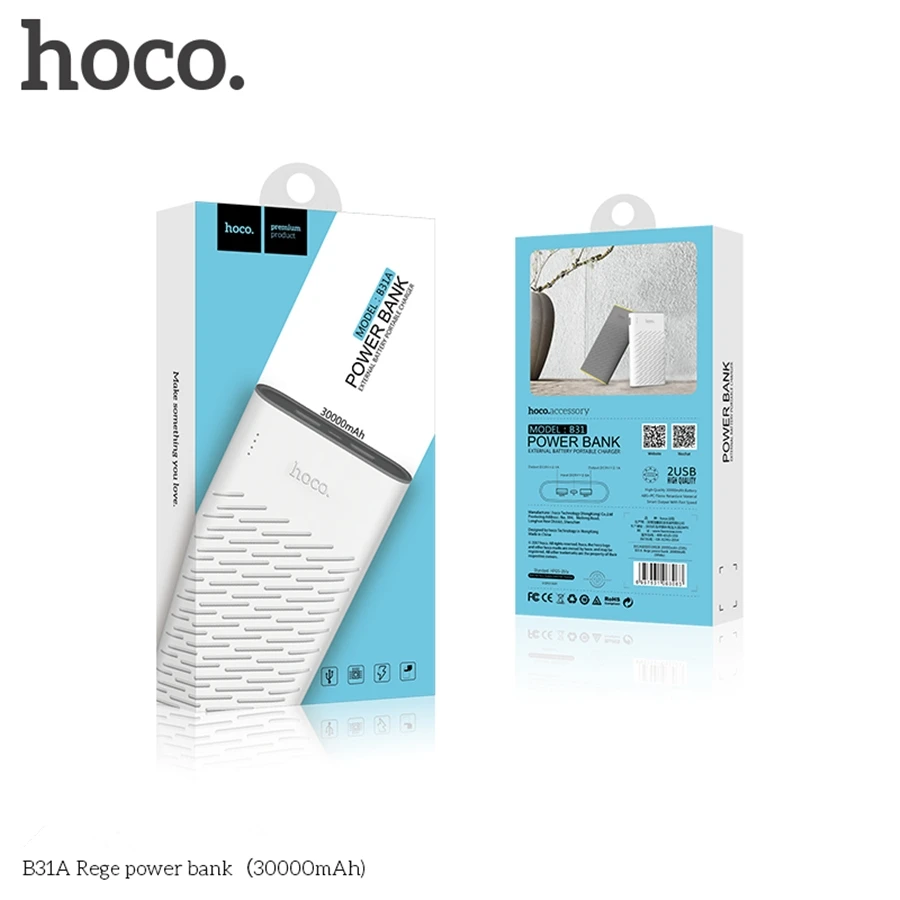 HOCO B31A Power Bank 18650 30000mAh 2USB Portable External Mobile Battery Charger