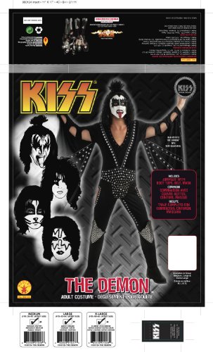 -. Binding : Apparel -. Brand : Rubie's -. ClothingSize : One Size -. Color : multi-colored -. Department : mens -. Feature : Adult size deluxe costume lets you play the demon from kiss / Features jumpsuit with boot tops / Includes belt and mask; wig sold separately / Look for all the kiss costumes and accessories to create a fun group or family costume / Rubie's costume company is a family-owned business based in new york with more than 60 years experience bringing children and adults the costumes and accessories they want for halloween and year-round dress up -. Genre : Career -. IsAdultProduct : 0 -. Label : Rubies Costumes - Apparel -. Manufacturer : Rubies Costumes - Apparel -. MPN : R880124 -. NumberOfItems : 1 -. PackageQuantity : 1 -. PartNumber : R880124 -. ProductGroup : Apparel -. ProductTypeName : ADULT_COSTUME -. Publisher : Rubies Costumes - Apparel -. Size : One Size -. Studio : Rubies Costumes - Apparel -. Title : Kiss Deluxe The Demon Costume