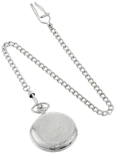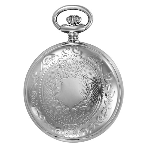 -. Feature : Chrome finish brass 41mm hunter case with a matching curb chain / White dial with date display / Swiss parts quartz movement / Deluxe gift box