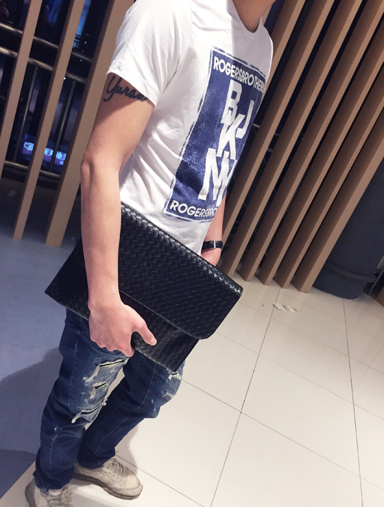 男士手抓包个性手拿包编织单肩包斜跨包韩版时尚包包商务休闲男包