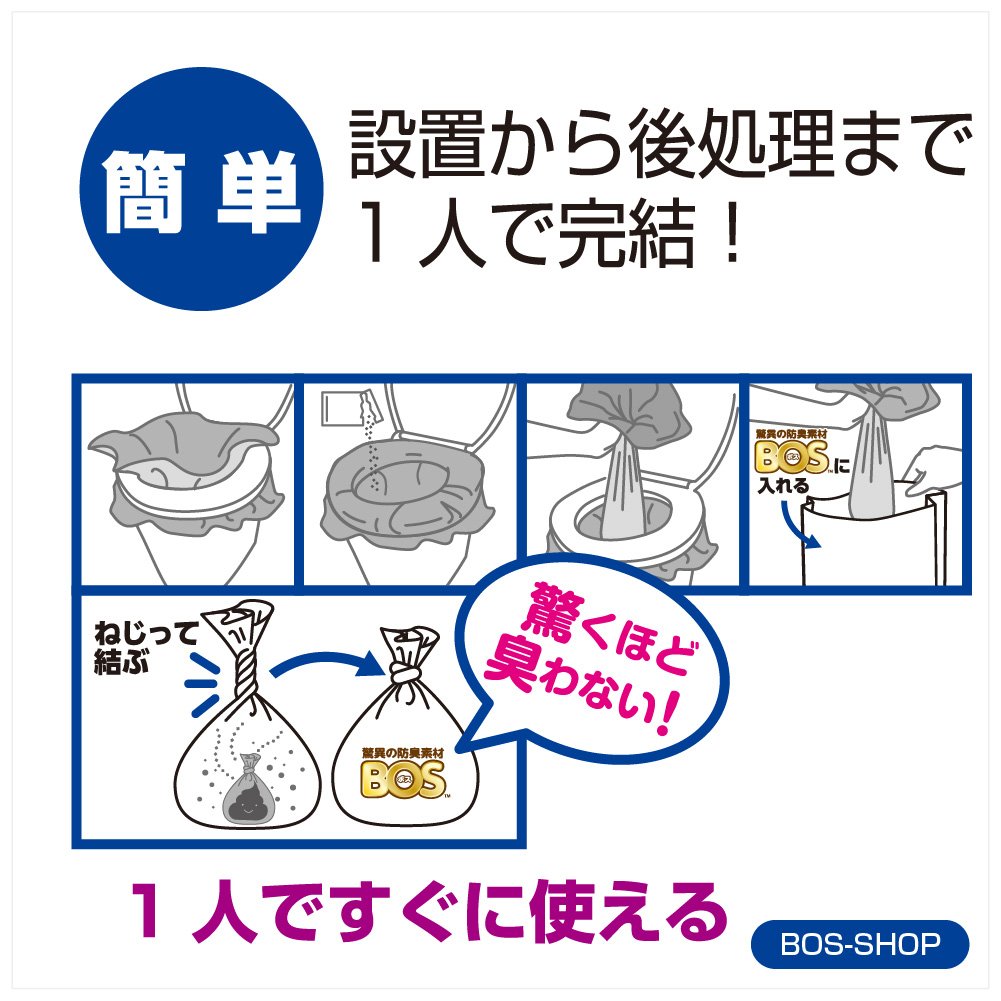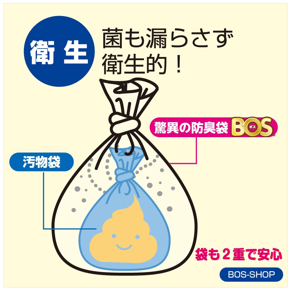 By placing the waste bag after excretion in "a staggering deodorant bag BOS", we will also confine the smell and fungus.