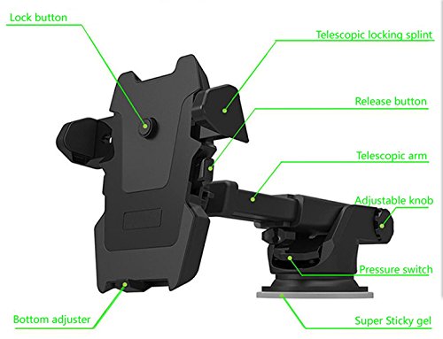 Mobile Phone Car Mount Holder with 360 Rotation and Release Button Secure Phone/GPS to Windshield, Compatible with iPhone X 8/8s 7 7 Plus 6s Plus 6s 6 SE Samsung Galaxy and More Smartphone&GPS
