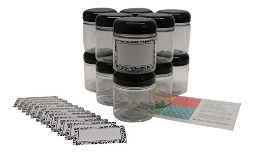 Clear 4 oz Plastic Jar with Black Dome Lid (12 pk) with Labels - PET Round Refillable Containers