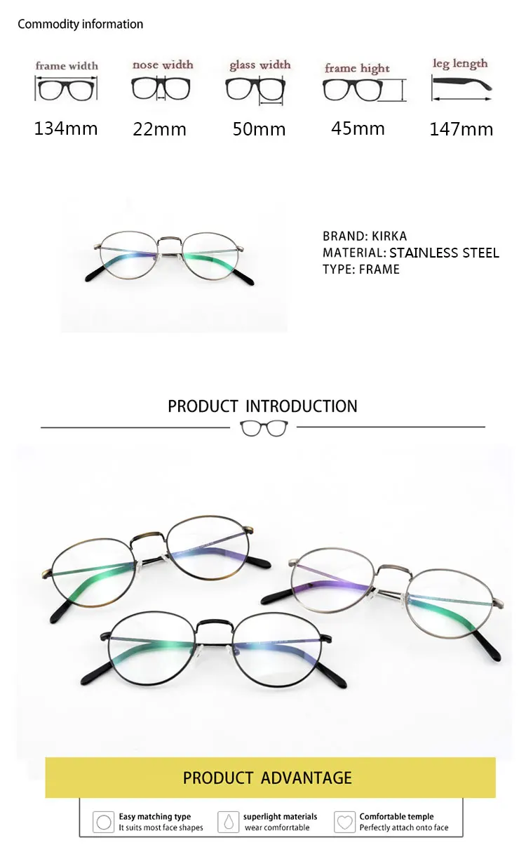 Name:Kirka Metal Retro Clear Lens Round Frame Glasses