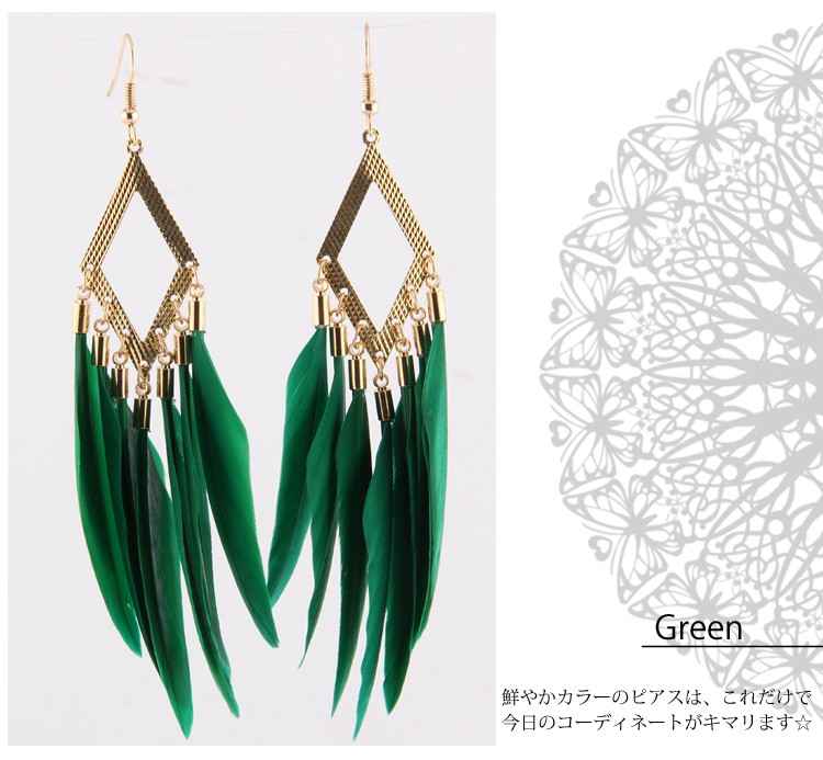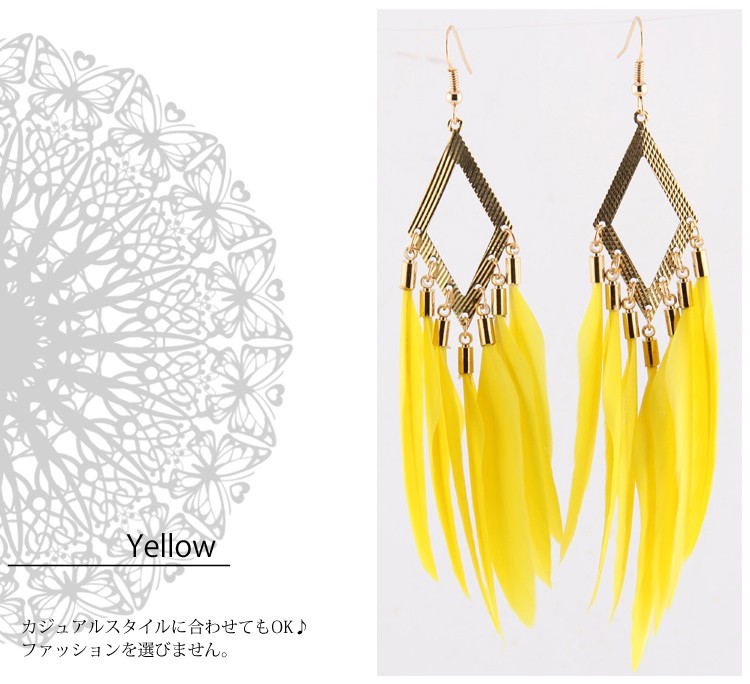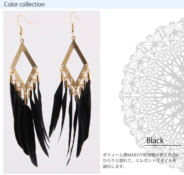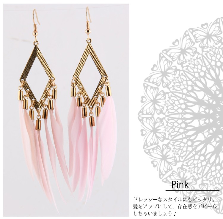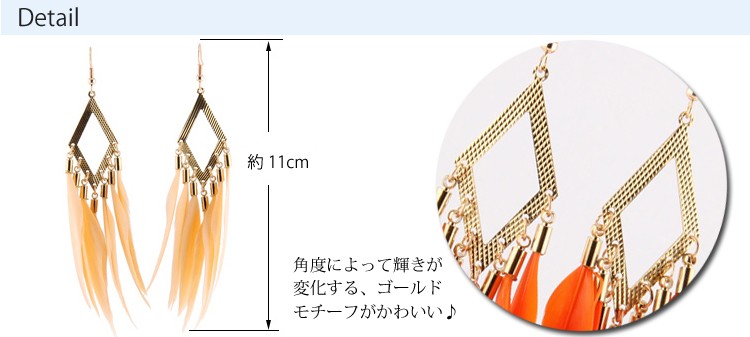 『送料無料』フェザーフリンジ ピアス フックピアス ジプシー 羽 ユラユラ揺れて 大ぶり パーティー シーズンモチーフ ヒッピースタイル レディースフェザーフリンジピアス 羽ピアス ボリュームピアス パーティアクセサリーにぴったり フックピアス ジプシーピアス