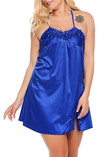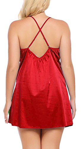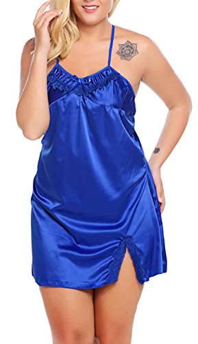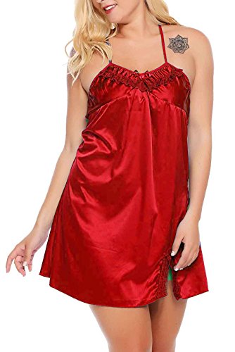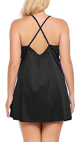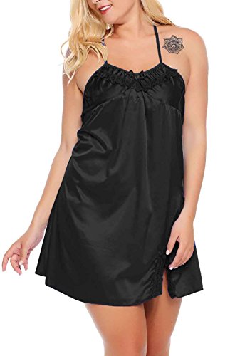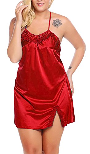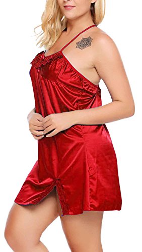 Women Sexy Lace Floral Chemise BabydollLingerie Satin Sleepwear with G string Plus Size