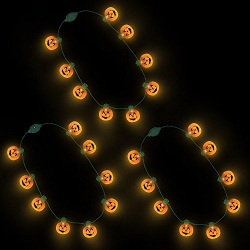 (3 Pack) LED Light Up Pumpkin Necklace with 6 Flashing Modes - Halloween Party Favors