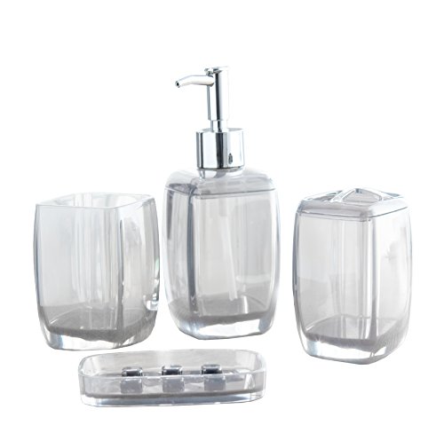 -. Title : Bath Bliss Contemporary Acrylic 4 Piece Bathroom Accessory Set, Assorted Sizes and Colors