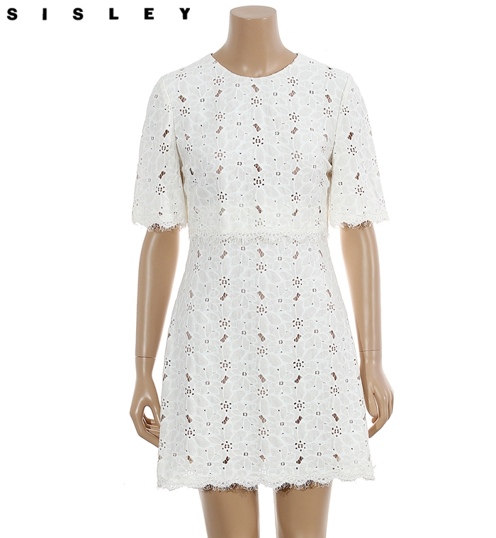 플라워 레이스 소재를 사용하여 여성스러운 원피스입니다