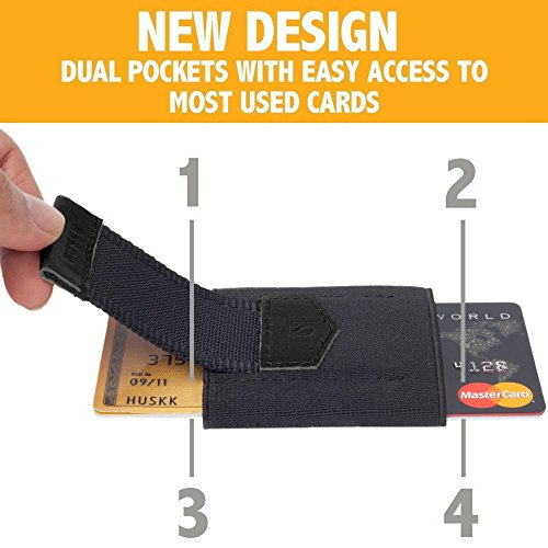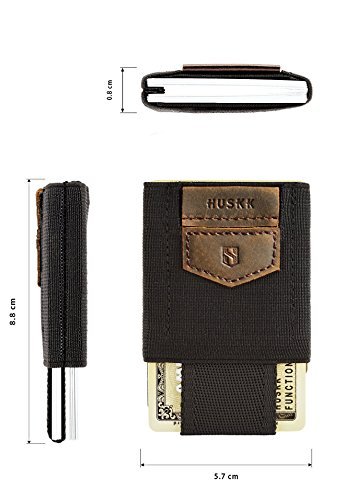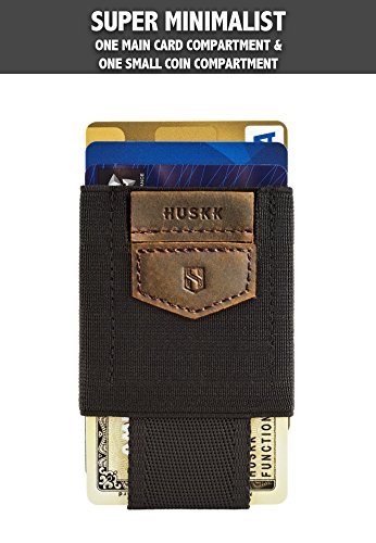 Binding : Apparel Product Description When you're on the go, you don't want to leave behind any of your cards, but you also don't want to end up with a big bulge in your pocket from a large men's wallet! That's why the HUSKK Minimalist Slim Travel Wallet is the perfect credit card wallet for everyday use, business trips and vacations! Our slim wallet is uniquely designed to solve the problem of how to carry multiple cards while enjoying the benefits of a compact, small wallet. Our credit card wallet is packed with unique features, including: - ULTRA SLIM DESIGN. Our small wallet will fit comfortably in any pocket due to its minimalistic design. - PLENTY OF SPACE FOR CARDS. Our slim wallet has room for all of your credit cards, bank cards, IDs and store loyalty cards, as its elasticated design allows it to stretch to fit whatever you need to carry. - QUICK ACCESS POCKET. Place your most frequently used card in the second compartment of the travel wallet, and you can access it fast by pulling on the leather tipped canvas strap. - SECURE GRIP. The elasticated men wallet keeps your cards perfectly secure, so you won't have to worry about them sliding out in your pocket or falling out when it comes time to pay. - CONVENIENT STORAGE POCKET. At the front of the slim wallet is a handy pocket where you can stash a key, coins, bills or receipts. - DURABLE CRAFTSMANSHIP. Our small wallet is big on quality and will hold up well to wear and tear, even if you carry it daily as a travel wallet. Keep all of your cards with you on the go without being weighed down by a bulky credit card wallet! Choose the small wallet that still has room for everything! Order the HUSKK Minimalist Slim Travel Wallet now. 0