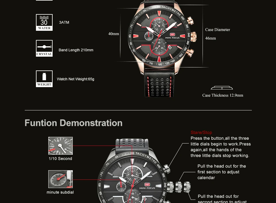 Feature:Water Resistant,Stop Watch,Complete Calendar,Chronograph